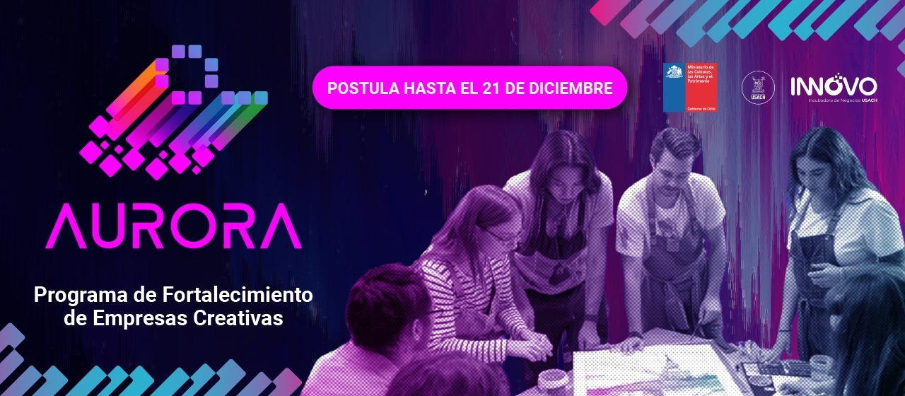 ¡Bienvenidos a AURORA! Un programa de fortalecimiento de Industrias Creativas, que surge de la alianza entre el Ministerio de las Culturas, las Artes y el Patrimonio, a través de la Secretaría Ejecutiva de Economía Creativa, y la Universidad de Santiago de Chile (USACH).